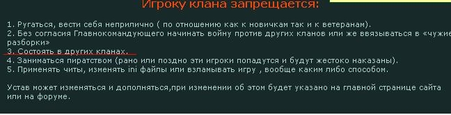 | Quote (Jok) Согласно устава клана СаС, клан существуем только на сервере Али, так как вы не собираемся там летать то думаю ничего страшного если мы там останемся и будем там иногда появляться для тренировок. Джок это скрин вашего устава с вашего сайта,если вы к нам перешли значит перешли а тренироваться можете и с нами мы тоже на Али играем